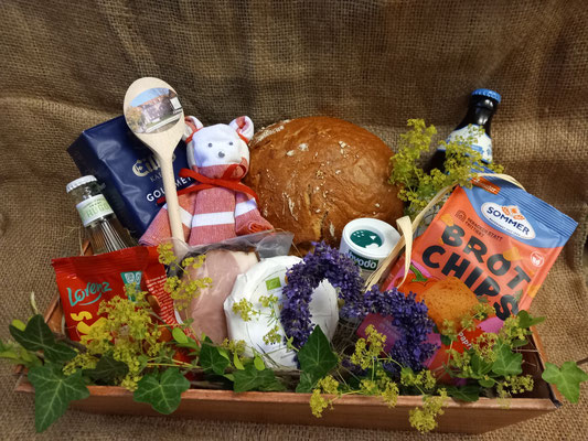 Gerne stellen wir Ihnen einen Geschenkkorb mit regionalen Produkten - angepasst an Ihre individuellen Wünsche - zusammen.