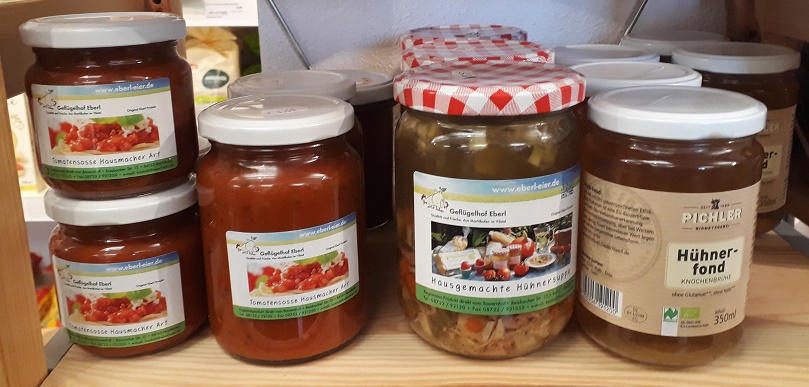 Darüber hinaus sind Sie bei uns bestens versorgt mit biologischen Lebensmitteln wie z. B. Eier, Nudeln, Obst, Gemüse, Wein und noch mehr. Bio-Suppenhühner und Bio-Gänse können Sie einmal im Jahr bei uns bestellen....natürlich aus der